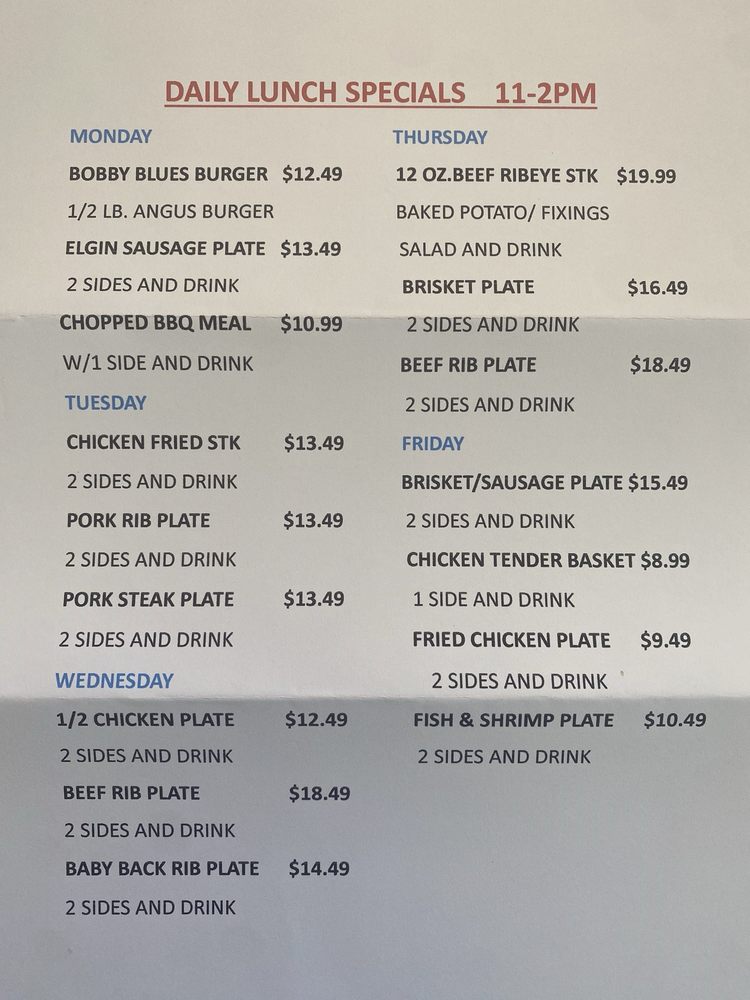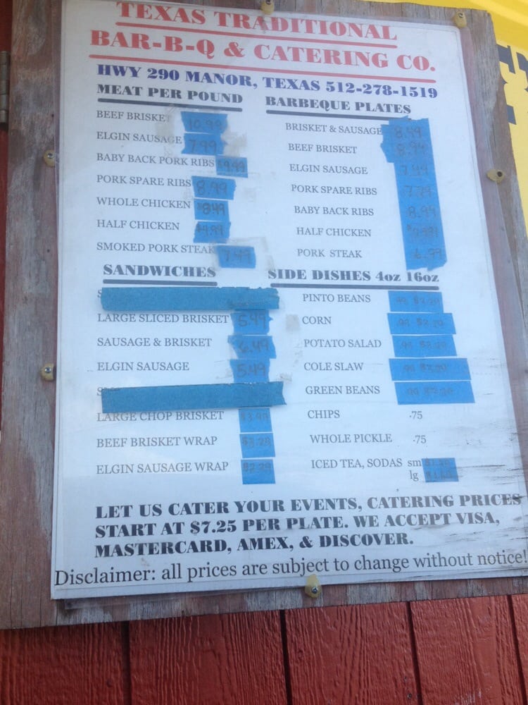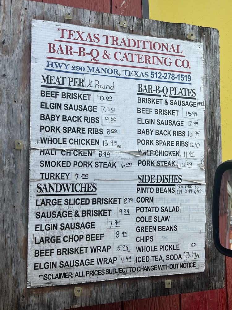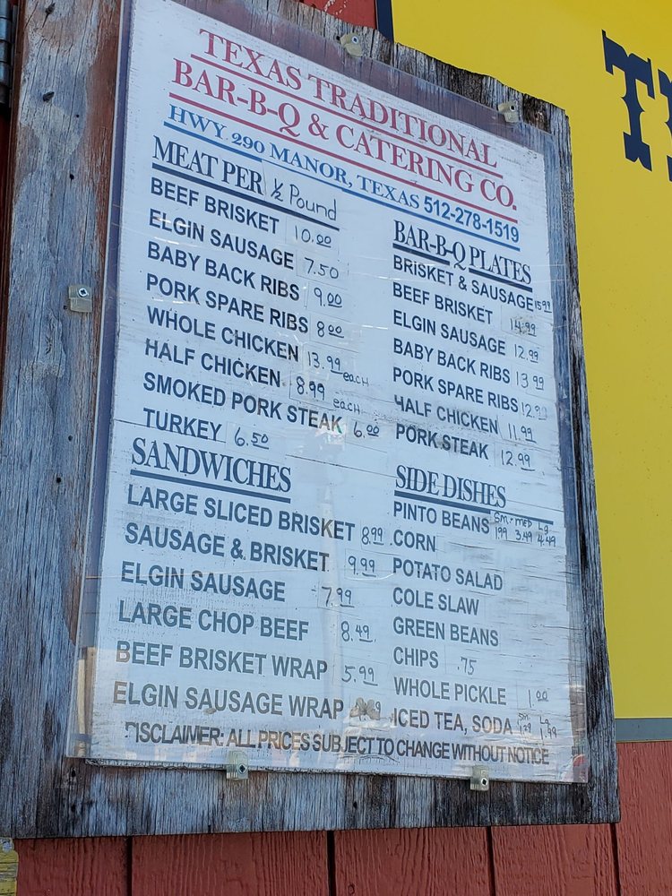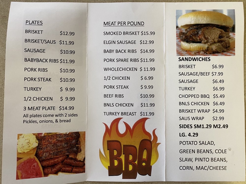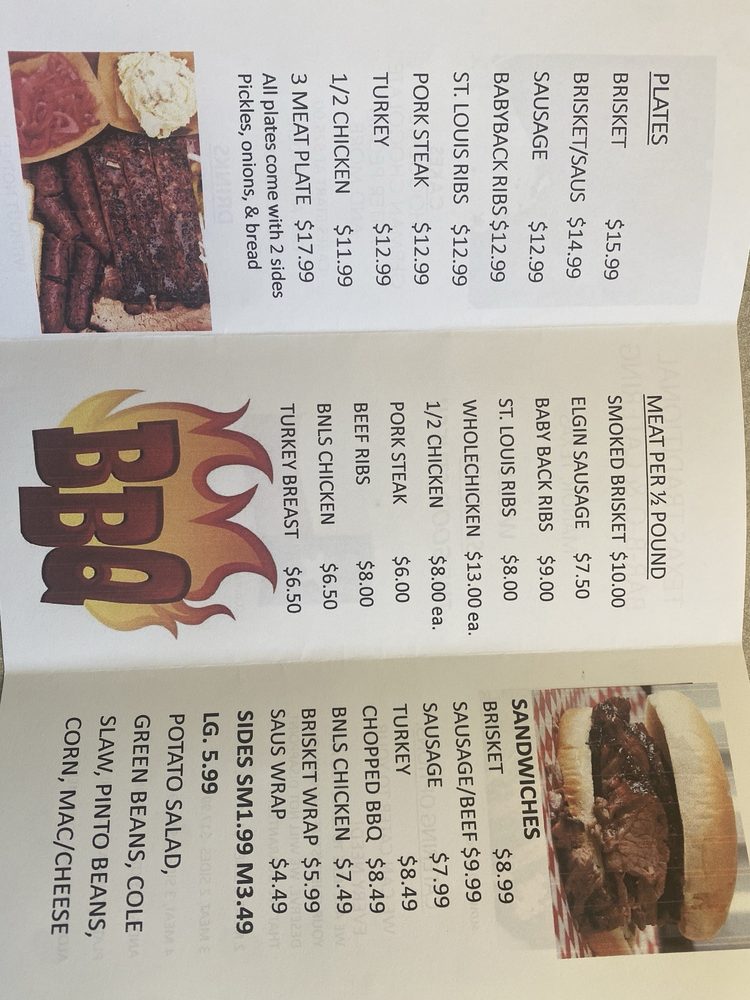Texas Traditional Bar-B-Q Menu (Update 2025)